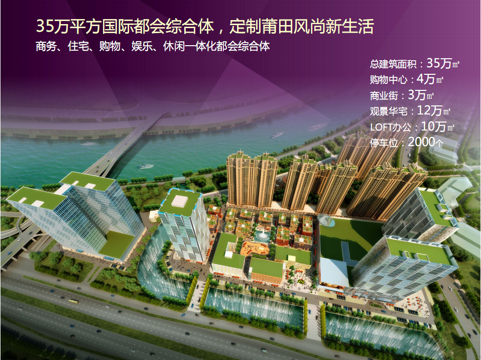 聯(lián)創(chuàng)國際廣場集購物公園、LOFT高檔寫字樓、木蘭溪一線觀景華宅于一體 ,完美地將購物、休閑、餐飲、娛樂及購物環(huán)境有機地結(jié)合。其中,購物公園將由若干棟獨棟商業(yè)旗艦店、情景步行街、園林小品、SHOPPINGMALL組合而成,將為莆田打造一個全新的休閑購物模式;將引進國家級標(biāo)準(zhǔn)真冰滑冰場、巨幕影院、莆田首個音藝中心等,吃喝玩樂購一站式搞定。
