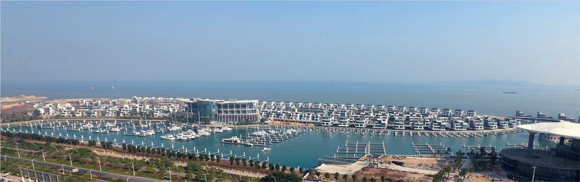 一期由159幢別墅、游艇俱樂(lè)部和游艇訓(xùn)練維修中心組成;二期由一幢精裝修的公寓式酒店、一幢高檔裝修的寫字樓和一幢超五星級(jí)酒店組成。該項(xiàng)目第一期工程于2008年5月開(kāi)工建設(shè),于2010年底竣工交付使用。